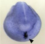 nadk (NAD kinase) gene expression in Xenopus laevis embryo, assayed via in situ hybridization, NF stage 18, anterior view, dorsal up.