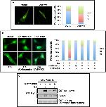 FIGURE 5:. Akt promotes cytoplasmic sequestration of Fam13a and binding between Fam13a and 14-3-3. (A) Representative immunofluorescence images, showing the subcellular distribution of Fam13a when cotransfected with an empty vector or Akt-myr in NIH3T3 cells. (B) Representative immunofluorescence images, showing subcellular localization of Fam13a in NIH3T3 cells treated with DMSO (control), OA, wortmannin, LY294002, OA plus wortmannin, or OA plus LY294002. Fam13a localized in the nucleus in control (DMSO) cells. OA-treated cells exhibited cytoplasmic localization of Fam13a. Fam13a remained in the nucleus in wortmannin, LY294002-, OA/wortmannin-, or OA/LY294002-treated cells. Bar graphs in A and B indicate the percentage of cells that exhibit nuclear, cytoplasmic, or homogeneous subcellular distribution. (C) Inhibition of Akt activation by wortmannin reduces OA-induced binding between Fam13a and 14-3-3 in a GST pull-down assay. Fam13a-expressing NIH3T3 cells were treated with DMSO (control), OA, wortmannin, or OA plus wortmannin. Cell lysates were used in a GST pull-down assay. OA treatment strongly enhanced the binding between Fam13a and GSTâ14-3-3. This effect of OA treatment was reduced by wortmannin treatment. Wortmannin treatment itself had minimal effect on the binding between Fam13a and GST-14-3-3. |
