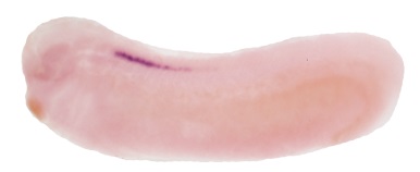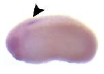 uts2b (urotensin 2B) gene expression in Xenopus laevis embryo, assayed via in situ hybridization, NF stage 24, lateral view, anterior left, dorsal up.