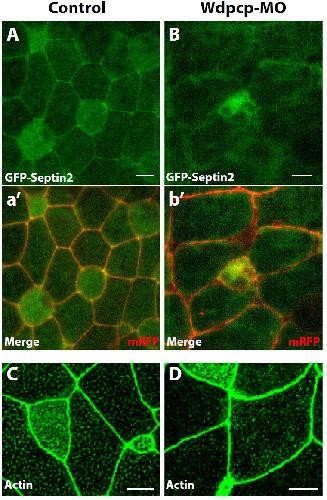 and D) Knockdown of Wdpcp expression did not disrupt cortical actin accumulation.