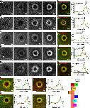 FIGURE 1:. Multiple, distinct lipid domains form around single-cell wounds. (A) eGFP-PH (GRP1) detects PIP3 accumulation. (A′) PIP3 peak enrichment occurs inside the active Cdc42 zone at 90 s. (B) eGFP-PH (PLCδ) detects PIP2 enrichment. (B′) PIP2 peak enrichment is outside the active Cdc42 zone at 90 s. (C) eGFP-C2 (lactadherin) detects PS enrichment. (C′) PS peak enrichment occurs inside the active Cdc42 zone at 90 s. (D) eGFP-Spo20 detects a region of PA depletion (arrowheads) immediately after wounding, followed by enrichment. (D′) The peak of PA signal is found inside the zone of active Cdc42 at 90 s. (E) eGFP-C1 (PKCη) detects a region of DAG enrichment. (E′) The peak of DAG enrichment leads the peak of active Cdc42 at 90 s. (F) The peak of DAG enrichment leads the peak of PIP2. (G) The peak of PIP3 enrichment leads the peak of PIP2. (H) The peak PS signal leads the peak PA signal. (I) The peak DAG and PA signal are colocalized. (J) Schematic of lipid localization relative to the active Rho and Cdc42 zones. Scale bar, 20 μm. W, wound.