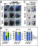 Quantification of gene expression changes following PMP treatments. Real-time PCR quantification of gene expression in st. 33 dissected heads following treatments with 600 μM PMP or DMSO from the indicated stages, shown as the mean ratio between PMP and DMSO conditions in four independent experiments. Error bars show standard deviations. *P < 0.05; **P < 0.01; ***P < 0.001; ns, non-significant (P ≥ 0.05) according to two-tailed Student’s t-test.