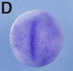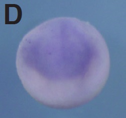 igfbp5 (insulin-like growth factor binding protein 5) gene expression in Xenopus tropicalis embryo, assayed via in situ hybridization, NF stage 9, lateral view, animal up.
