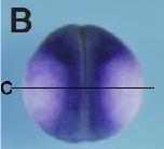 igfbp4 (insulin-like growth factor binding protein 4) gene expression in Xenopus tropicalis embryo, assayed via in situ hybridization, NF stage 15, anterior view, dorsal up.