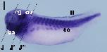 igfbp4 (insulin-like growth factor binding protein 4) gene expression in Xenopus tropicalis embryo, assayed via in situ hybridization, NF stage 30, lateral view, anterior left, dorsal up.
