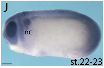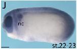 23 embryos; anterior is to the left; nc: neural crests. Scale bars = 250μm.