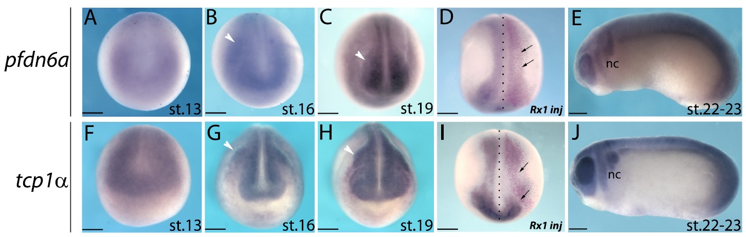 Figure 3. Whole mount in situ hybridization analysis of pfdn6a and tcp1α during