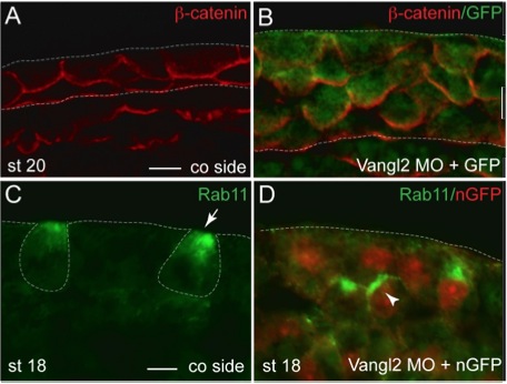 Ossipova, Role of Rab11 in planar cell polarity and apical constriction during vertebrate neural tube closure. 2014, Pubmed , Xenbase