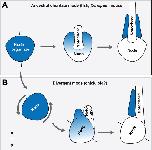 Fig. 4. Cilia in the sea urchin gastrula embryo. Schematic of the dorsal half of a late gastrula sea urchin embryo. We speculate that archenteron (ac) cells are ciliated (A), and that cilia are polarized and produce a leftward fluid flow (B, green arrow). Nodal-expressing cells at the archenteron tip are in blue.
