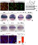 Fig. 7. Dvl2 internalization and activity is dependent on Ap2μ2-binding sites. (AâE) In situ hybridization shows decreased activity of the Wnt/β-catenin signaling pathway reflected by the induction of axin2 expression in blastula-stage embryos at 30% epiboly. Embryos were injected with indicated constructs; the lateral view is shown (the dorsal side is on the right). (A) nâ=â72; (B) 33/39; (C) nâ=â27/29; (D) nâ=â23/29; (E) nâ=â33/35. (F) Relative target gene expression analyzed by real-time PCR with primers against Axin2 (blue) and Lef1 (red) on embryonic cDNA injected with the indicated constructs. Error bars are given as +s.e. of two independent experiments scanned in duplicates. (G,H) Blockage of Dynamin-dependent endocytosis reduces the Axin1-GFP signal in the cytoplasm. Confocal images show 12â µm z-stacks of live embryos at 40% epiboly stage. Indicated constructs were injected at 1â ng as synthetic mRNA, except Axin1 (2â ng), at one-cell stage. (IâM) Axin1 is blocked at the cytoplasmic membrane and its stability reduced when interaction between Dvl2 and AP2μ2 is impaired. (I) Control. Axin1 aggregates in the cytoplasm. (JâL) Co-expression of Dvl2 single- (J,K) and double-mutants (L) together with Axin1. (M) Colocalization of Axin1 with wild-type Dvl2 in cytoplasmic punctae. Confocal images represent single z-sections of live embryos at 40% epiboly stage. Indicated constructs were injected as synthetic mRNA (2â ng each) at one-cell stage. |