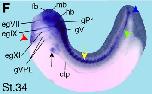 crip1 (cysteine-rich protein 1 (intestinal)) gene expression in Xenopus laevis embryo, assayed via in situ hybridization, NF stage 33, lateral view, anterior left, dorsal up.