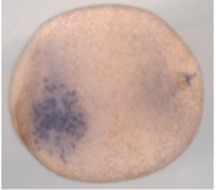 zfp36 (ZFP36 ring finger protein) gene expression in Xenopus tropicalis embryo, assayed via in situ hybridization, NF stage 20, lateral view, anteriorleft, dorsal up.