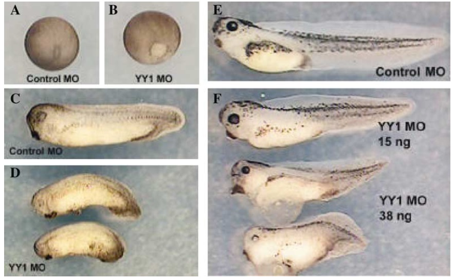 (Control MO; A, C, E) or XYY1-specific antisense morpholino oligonucleotide (YY1 MO; B, D, F) Injected embryos were fixed when sibling