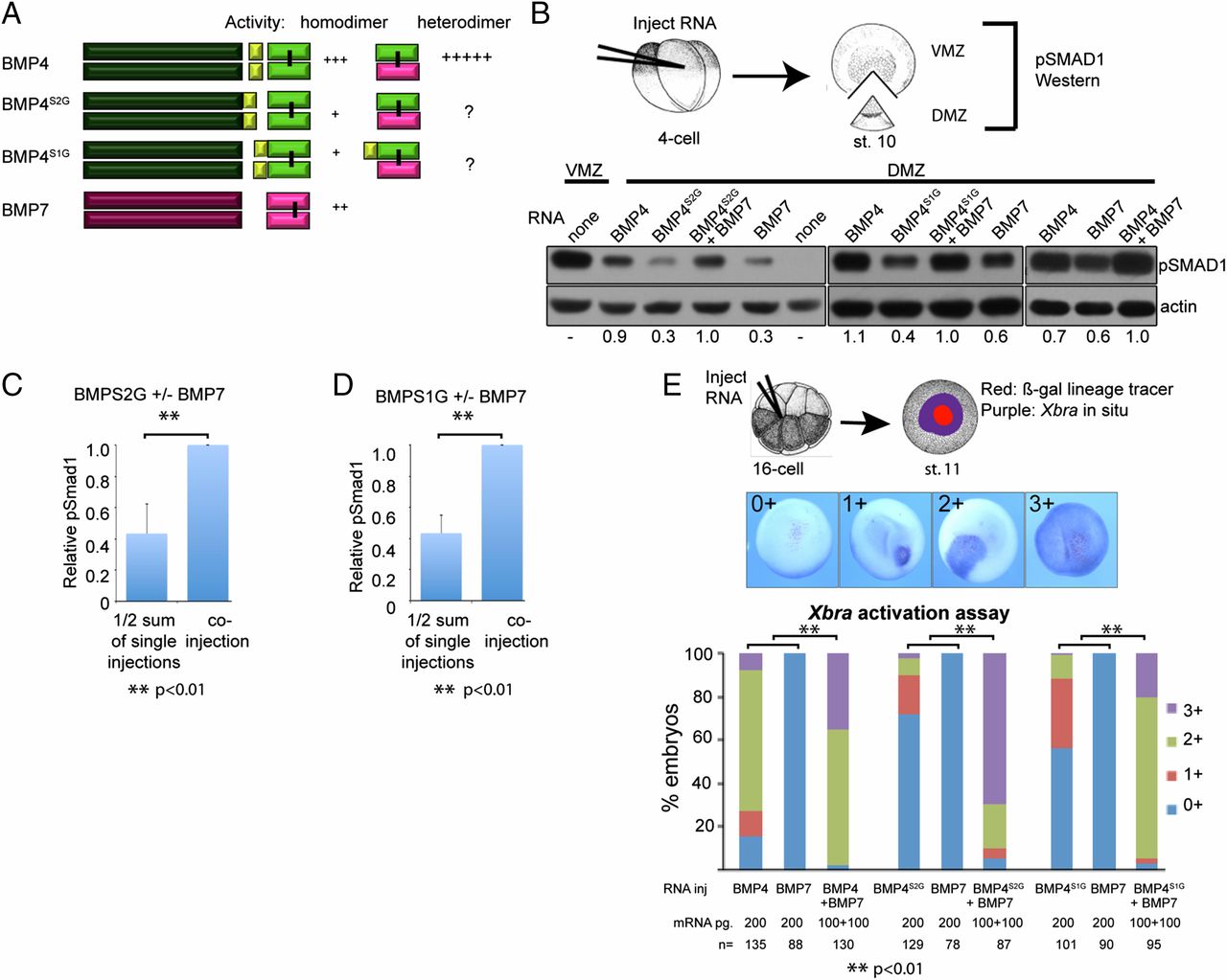 Goldman, Mutation of an upstream cleavage site in the BMP4 prodomain leads to tissue-specific loss of activity. 2006, Pubmed , Xenbase