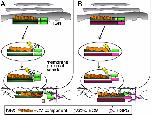 Fig. 6. Hypothetical model for the role of the prodomain in promoting homodimer and heterodimer activity. (A) One or more ECM proteins bind to the prodomain of BMP4 intracellularly and traffic with the precursor to the cell surface where BMP4 is sequentially cleaved in a membrane proximal compartment. The transient ECM protein/prodomain/mature ligand complex that forms after S1 cleavage ensures that mature BMP4 is deposited in the ECM coincident with S2 cleavage, thereby facilitating association of the homodimeric ligand with HSPGs or other ECM proteins that are required for ligand stability. (B) The BMP4 prodomain, unlike the BMP7 prodomain, is sufficient to enable stable heterodimers to form. Following cleavage, the BMP4 and BMP7 prodomains remain associated with the heterodimeric ligand. The BMP4 prodomain binds to one or more ECM components, thereby anchoring the signaling complex in the matrix and/or presenting the heterodimeric ligand to HSPGs or other binding partners that facilitate signaling. |