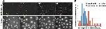 FIGURE 6:. Initial distance between nucleating sites influences CPC recruitment. The same experiment as in Figure 5 was performed without molecular perturbations. The CPC probe is directly labeled anti-AurkB, and beads coated with anti-AurkA are the aster nucleators. Bead pairs were identified based on whether their asters interacted at the end of the movie. The distance between the bead pairs was measured at the start of the movie, and whether or not a CPC-positive zone formed between beads was scored upon initial aster–aster contact. (A) Example images from a time-lapse sequence. Arrowheads indicate typical bead pairs. Yellow and blue show examples where AurkB-positive zones did not form between beads; magenta shows examples where AurkB-positive zones did form. Note that the yellow arrowheads are close together (n = 2), blue arrowheads are further apart (n = 7), and magenta arrowheads are separated by an intermediate distance (n = 15). (B). Histogram of initial bead separations plotted separately for bead pairs where an AurkB-positive zone did (blue bars; n = 39) or did not (red bars; n = 30) form upon aster–aster contact. Initial distances were pooled for multiple fields imaged in parallel in two independent experiments (six fields total). Note that the initial separation distance was unimodal for bead pairs for which a CPC-positive zone did form. The distribution was much more spread out, and possibly bimodal, for bead pairs for which a CPC-positive zone did not form.