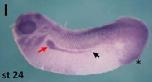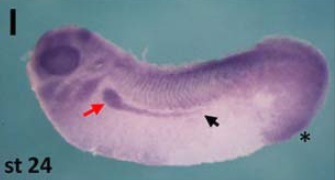 hspa9 (heat shock protein family A (Hsp70) member 9 ) gene expression in Xenopus laevis embryo, assayed via in situ hybridization, NF stage 24, lateral view, anterior left, dorsal up.