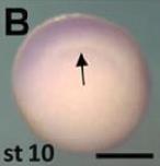 Figure 1. Expression pattern of Hspa9 in Xenopus laevis embryo. A: RT-PCR hspa9 expression in Xenopus laevis embryos from stages 3 to 40 of development with odc1 as house-keeping gene. BâH: Whole-mount ISH of hspa9. B: Early gastrula, arrow indicates the position of the blastoporal lip. C: Early neurula stage (anterior view, dorsal side up) shows hspa9 expression in neural and mesodermal territories. D,E: hspa9 is expressed in somite (s), mesoderm (m) and intermediate mesoderm (im). F: hspa9 labels the pronephros anlage (pa). G: At early tail bud stage, strong expression of hspa9 in eye (e), otic vesicle (ov), branchial arches (ba), somites and pronephros, from proximal (red arrow) to distal part (black arrow). Gâ²: Section through the plan of dotted line in G. H,Hâ²: Tadpole stage shows persistent hspa9 expression in the pronephros tubule. IâL: hspa9 pronephros expression was compared with pax8 and pax2 renal markers. Arrows show similar hspa9 and pax expression domains, up to the tip of the nephric duct. A strong hspa9 expression is present in the proctodeum (asterisk in I, K). Abbreviations: dt, distal tubule; g, glomus; it, intermediate tubule; n, notochord; pt, proximal tubule. Scale bars = 0.5 mm in BâH; 1 mm in IâL.Download figure to PowerPoint