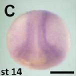 hspa9 (heat shock protein family A (Hsp70) member 9 ) gene expression in Xenopus laevis embryo, assayed via in situ hybridization, NF stage 14, dorsal view, anterior down.
