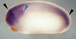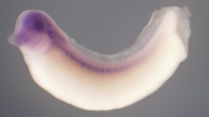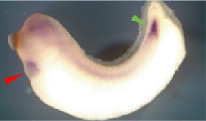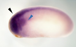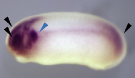 fbxl19 (F-box and leucine-rich repeat protein 19) gene expression in Xenopus laevis embryo, assayed via in situ hybridization, NF stage 26, lateral view, anterior left, dorsal up.