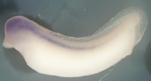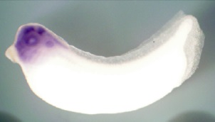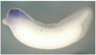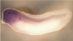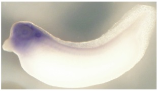 fbxo3 ( F-box protein 3 ) gene expression in Xenopus laevis embryo, assayed via in situ hybridization, NF stage 30, lateral view, anterior left, dorsal up.
