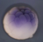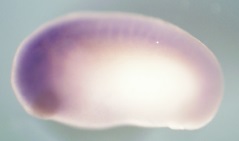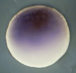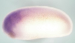 fbxo8 ( F-box protein 8) gene expression in Xenopus laevis embryo, assayed via in situ hybridization, NF stage 8, lateral view, animal up.
