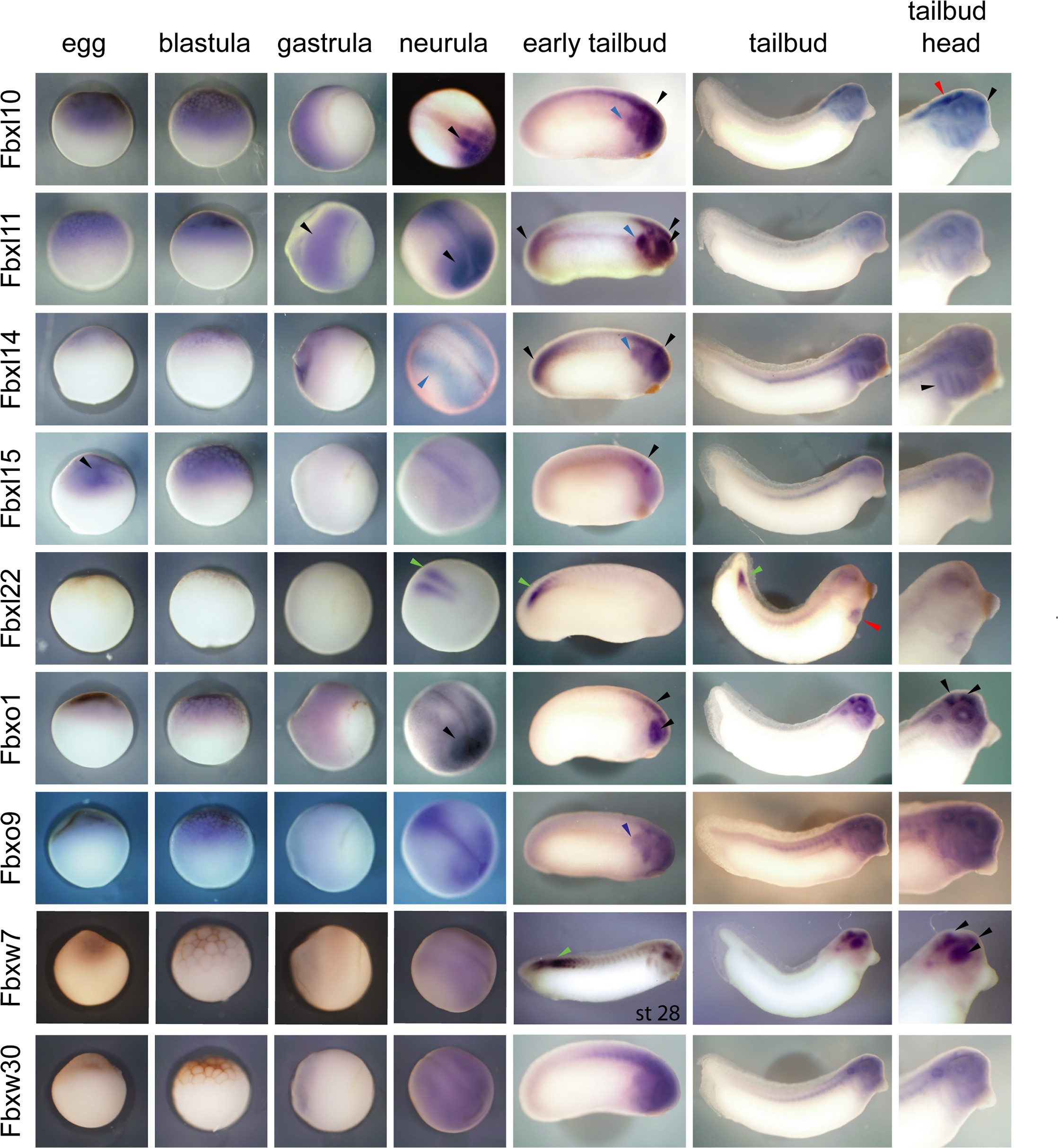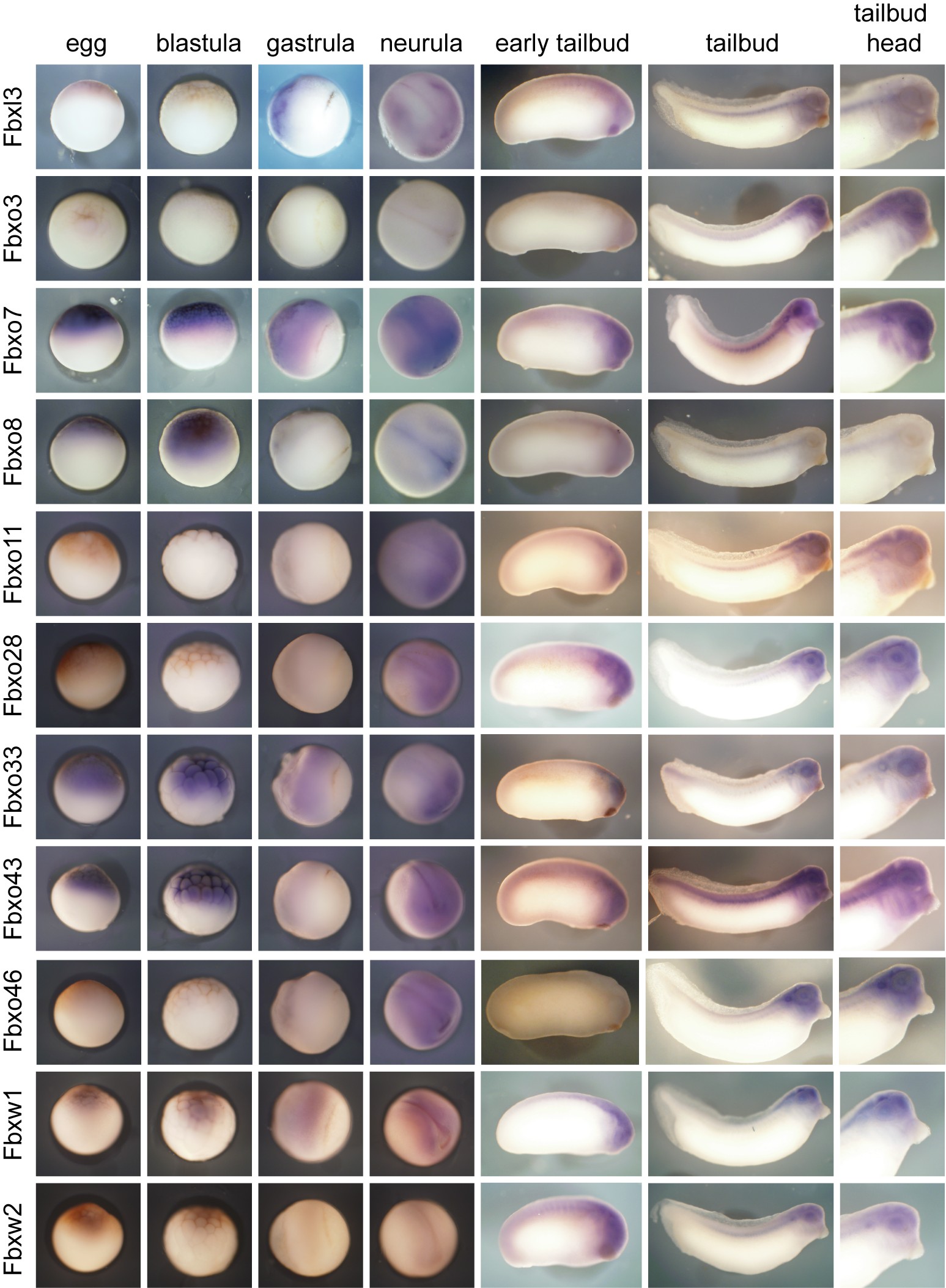 Fig 5. Spatial expression of F-box genes during X. laevis development using in situ hybridizations.