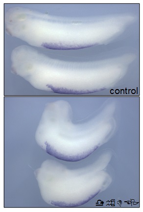 Fig. S5. Inhibition of non-canonical Wnt signaling in dorsal cells does not interfere with globin expression in the posterior VBI. RNA encoding DshâDEP was injected near the dorsal midline of 4-cell embryos and expression of globin was analyzed by WMISH at stage 34.