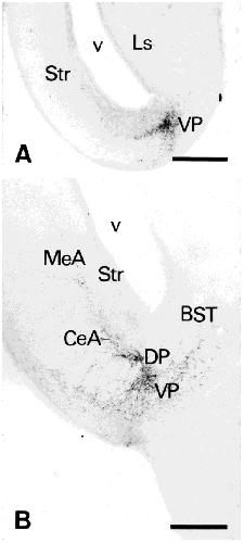 b-hydroxylase (DBH)i fibers/terminals in the VP, DP, and CeA. For
