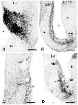 amygdala and the pallidal structures (D). Note the less dense innervation