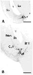 rostral (A) and caudal (B) telencephalic levels showing dopamine
