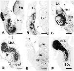 of R. perezi. Double-labeling techniques were used for SP (A–E),