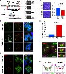FIGURE 8:. Knockout of TgEB1. (A) Schematic representation of TgEB1-KO transgenic line construction by CRISPR/Cas9-mediated homologous recombination. The position of two double-strand breaks created by Cas9 nuclease is marked by yellow lightning bolts. The red bars represent the 35 base pairs of 5′ and 3′ homologous regions flanking the break sites. Diagnostic PCR primer pairs I–III validating the replacement of the endogenous TgEB1 locus (marked by gray blocks) by the 1.5-kb PCR product containing the HXGPRT cassette are as indicated. Diagnostic PCRs of TgEB1-KO and its parental line using primer pairs I–III confirm the expected genotype. (B) Plaque assay of TgEB1-KO shows a reduction in plaque size compared with wild type after 7 d of incubation before fixation. Plaque size was measured from 50 plaques/sample in three independent experiments with an arbitrary unit by ImageJ (National Institutes of Health, Bethesda, MD) and analyzed with p < 0.05 (unpaired t test); error bars indicate SD. (C) IFA of wild-type and TgEB1-KO cells using α-Ndc80, α-Centrin, and α-IMC3 as kinetochore, centrosome, and parasite cytoskeleton markers, respectively. The inset magnifies the scattered kinetochores in the corresponding square; the white arrowhead marks a drifted kinetochore in an unequally segregated nucleus. (D) IFA shows that the scattered kinetochores appear in cells that underwent mitosis, using β-tubulin antiserum as a spindle MT marker. (E) Quantification of cells with the scattered-kinetochore phenotype. Up to 100 vacuoles with mitotic cells were counted from three independent experiments (total cell number, 336–352). Mitotic spindle staining using β-tubulin was used as a marker determining mitosis. p < 0.01 (Student’s unpaired t test); error bars indicate SD. (F) TgEB1-YFP (green)–expressing parasites costained for the centrosome (in magenta) and kinetochore (in red) show that the kinetochore complex resides in close apposition to the TgEB1-YFP–highlighted spindle poles. (G) Model of spindle association with the kinetochore in the wild-type and TgEB1-KO lines. Centrosomes are shown in magenta, TgEB1 in green, kinetochores in red, and MTs in gray. Bar, 3 μm. |