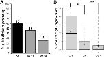 Fig. 3. Gremlin overexpression does not enhance regeneration of stage 54 limbs: A) Bar chart comparing the percentage of limbs undergoing regeneration to any degree in WT vs. hindlimbs (G6 F1 or F2) overexpressing grem1. Following amputation at future knee level, fewer G6 limbs attempted regeneration than their wild type siblings. Numbers on top of the bars indicate sample size (N). B) Boxplots of the number of digits regenerated in WT vs. grem1 (G6 F1 or F2) overexpressing hindlimbs. Centre lines show medians, box limits are 25th to 75th percentiles, whiskers extend to maximum and minimum values, and crosses indicate the sample means. Significant differences in the means are indicated as * (p < 0.05) and ** (p < 0.01) and were determined using 2-tailed unpaired t-tests. Rather than enhancing regeneration, grem1 overexpression appears to significantly reduce the ability of stage 54 limbs to regenerate.