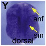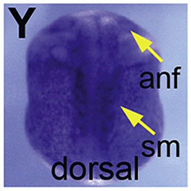 bcar3 (breast cancer anti-estrogen resistance 3) gene expression in Xenopus laevis embryo, assayed via in situ hybridization, NF stage 18, dorsal view, anterior up.