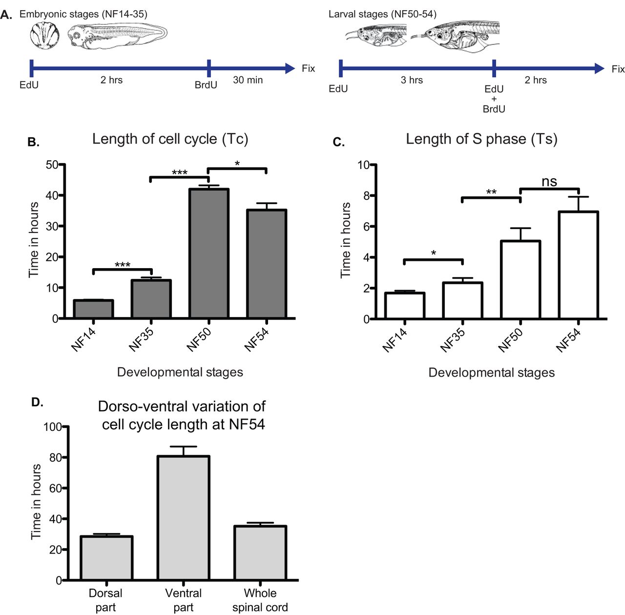 Analysis of neural progenitors from embryogenesis to juvenile adult in Xenopus laevis reveals biphasic neurogenesis and continuous lengthening of the cell cycle.