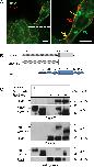 Fig 1. PTK7 and Ror2 co-localize in NC cells and co-precipitate independent of the kinase-homology domain of PTK7. A Co-localization of PTK7 and Ror2. NC cells co-expressing Ror2-EGFP and PTK7-RFP show distinct areas of co-localization (yellow) as well as membrane areas where only PTK7-RFP (red) or Ror2-EGFP (green) is localized. The right panel shows a higher magnification of the single cell in the left panel (indicated by a dashed square), scale bar = 10 μm. B,C Co-immunoprecipitation of PTK7 and Ror2. Full-length myc-tagged PTK7 (PTK7-MT) and a myc-tagged PTK7 deletion construct lacking the kinase homology domain (∆kPTK7-MT) as well as a full-length HA-tagged Ror2 construct were expressed in MCF7 cells. B Constructs and their protein domains are depicted in the top panel. Abbreviations are as follows: IG (immunoglobulin domain), CRD (cysteine-rich domain), K (kringle domain), TM (transmembrane domain), KH (kinase homology domain), TK (tyrosine kinase), S/T (serine/threonine-rich domain), P (proline-rich domain). C Immunoprecipitation experiment; the cell transfection scheme is indicated at the top. Co-immunoprecipitation was carried out using either anti-myc (IP α-MT, upper panel) or anti-HA antibodies (IP α-HA, middle panel). The respective cell lysates are shown in the bottom panel. Antibodies used for Western blotting and molecular weights are indicated at the right. doi:10.1371/journal.pone.0145169.g001 |