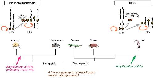 The evolution of basal progenitors in the developing non-mammalian brain.