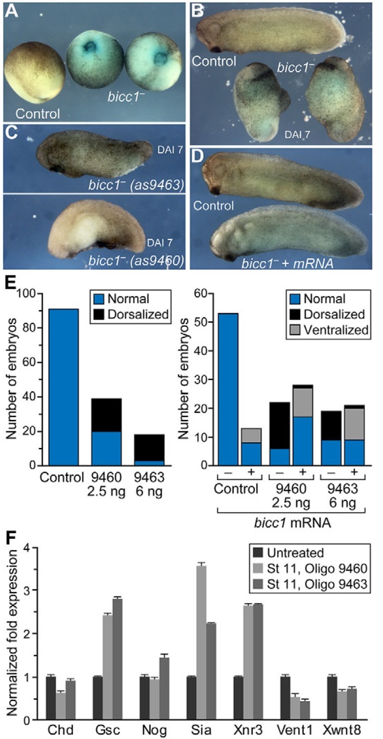 (C) Stage 30 embryos depleted of maternal bicc1 mRNA using either the 9460