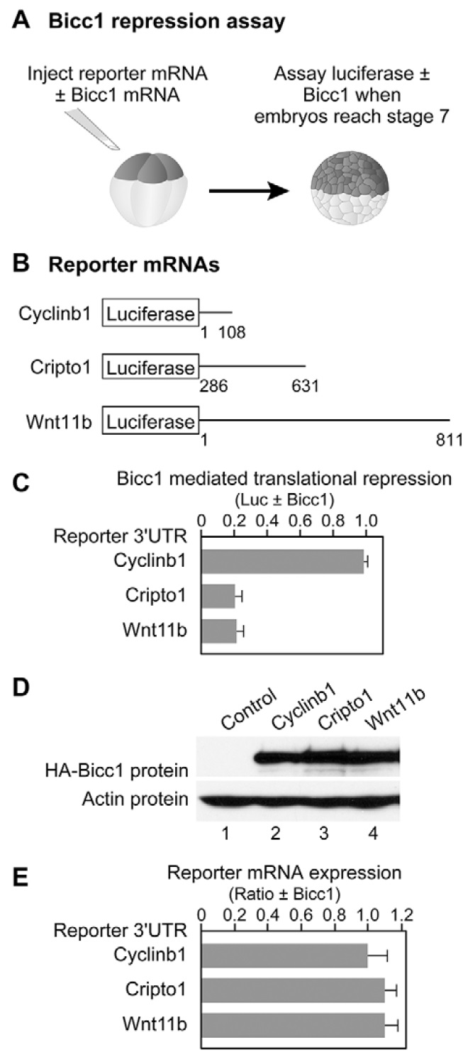 wnt11b mRNA associated with Bicc1, as did the positive control reporter