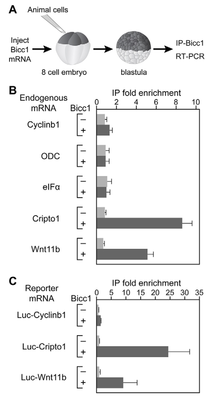 IP samples, similar to the known mRNA target cripto1. (C) The binding of Bicc1