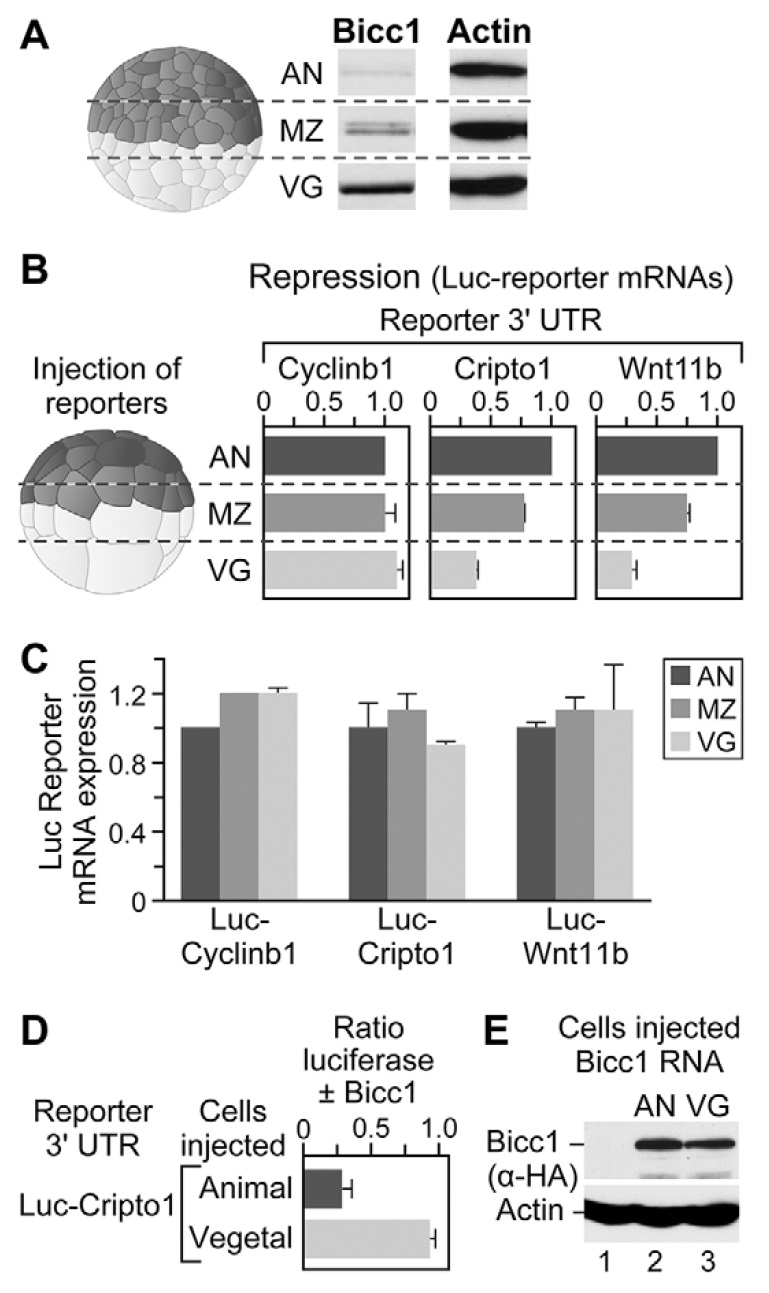 actin. (B) The Bicc1 repression activity is present in an animal-vegetal gradient.