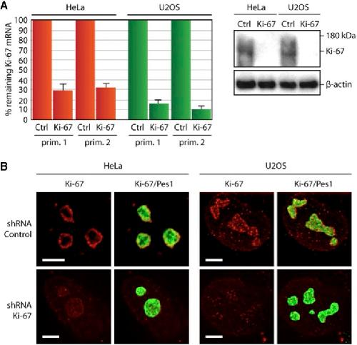 Rahmanzadeh, Chromophore-assisted light inactivation of pKi-67 leads to inhibition of ribosomal RNA synthesis. 2007, Pubmed