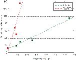 Figure S14. Calibration of the confocal microscope. Calibration curves for EGFP (green) and TagRFP (red) proteins under the most usable microscopy settings. |