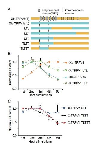 FIGURE 5. Ankyrin repeat domains (ARD) 1 to 3 in Xenopus TRPV1 are responsible for the species differences in heat response