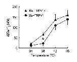 FIGURE 4. Comparison of Xla-TRPV1a and Xtr-TRPV1 heat responses by expression in HeLa cells Average increase in [Ca2+]i in response to heat stimulation in HeLa cells expressing Xla-TRPV1a (n = 10-16) or Xtr-TRPV1 (n = 9-15). A single heat stimulation was applied for each respective thermal stimulation. Each data point represents the mean ± S.E. *t-test, P<0.05