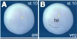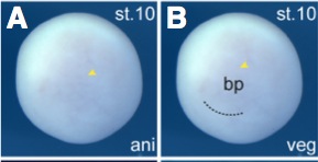 rnmt (RNA (guanine-7-) methyltransferase) gene expression in Xenopus laevis embryo, assayed via in situ hybridization, NF stage 10, animal view (A) and vegetal view(B).
