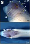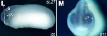 rnmt (RNA (guanine-7-) methyltransferase) gene expression in Xenopus laevis embryo, assayed via in situ hybridization, NF stage 27 (L): lateral view, anteriorleft, dorsal up, and (M) anterior view, dorsal up.