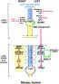 Studies in zebrafish and Xenopus have greatly contributed to our understanding of L/R development in vertebrates. Specifically, a variety of zebrafish mutants and surgical manipulations in Xenopus have been invaluable in demonstrating a key role for midline structures in L/R determination. It is becoming increasingly clear that the basic mechanisms and the molecular players are conserved among vertebrates, but interesting variations on the general L/R theme occur in fish and frogs. For example, in Xenopus (A), the L/R axis appears to develop significantly earlier than in other vertebrates. A “left–right coordinator” (LRC; in light blue), mediated by the activity of the TGF-β factor Vg1 ( 31 and 69), has been proposed to exist in the left side of the early blastula (at the 16-cell stage), establishing a mutual antagonism with a BMP activity in the right side (in light orange). The L/R coordinator would subsequently influence the Spemann organizer (depicted in black), which in turn relays the L/R positional information to other tissues. Interestingly, a transient array of microtubules during the first cell cycle appears to be essential for L/R development, suggesting that the L/R coordinator may be established as early as the D/V axis. Expression of Nodal (and, hence, Pitx2) can be induced by Vg1 and is antagonized by BMPs, which again stresses the conservation of the mechanism of control of Nodal and its targets. The midline is indicated in dark blue. (This figure has been adapted from Hyatt and Yost 1998 and Ramsdell and Yost 1999).
