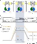 Figure 3. Mechanism of spontaneous pore openings, and energetic effects of bound ATP and gain-of-function mutations.(a) Cartoon representation of domain organization in closed (C), transition (T‡), and open (O) states, during spontaneous gating. Color coding as in Figure 1b, blue and red circles identify target positions. (b) Changes in energetic coupling between the target positions associated with spontaneous gating in the background construct. (c) Free energy profiles of gating for WT (orange line) and P355A-K978C (black line) CFTR in the absence of ATP, and of hydrolysis-deficient K1250R CFTR in saturating ATP (gray line) (Vergani et al., 2005). Black and gray downward arrows illustrate the energetic effects of the background double mutation and of the presence of ATP bound in both composite sites.DOI: